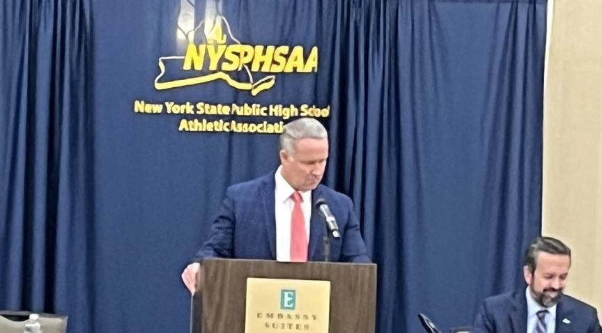 Section XI News Tim Mullins Addresses State Athletic Leaders at NYSPHSAA Meeting February 3, 2023 admin Vice President Tim Mullins leads the NYSPHSAA executive committee meeting in #Saratoga.