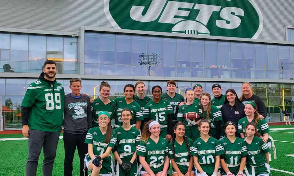 The Lindenhurst girl’s flag football team played Huntington at the New York Jets’ training facility in Florham Park, New Jersey last week.